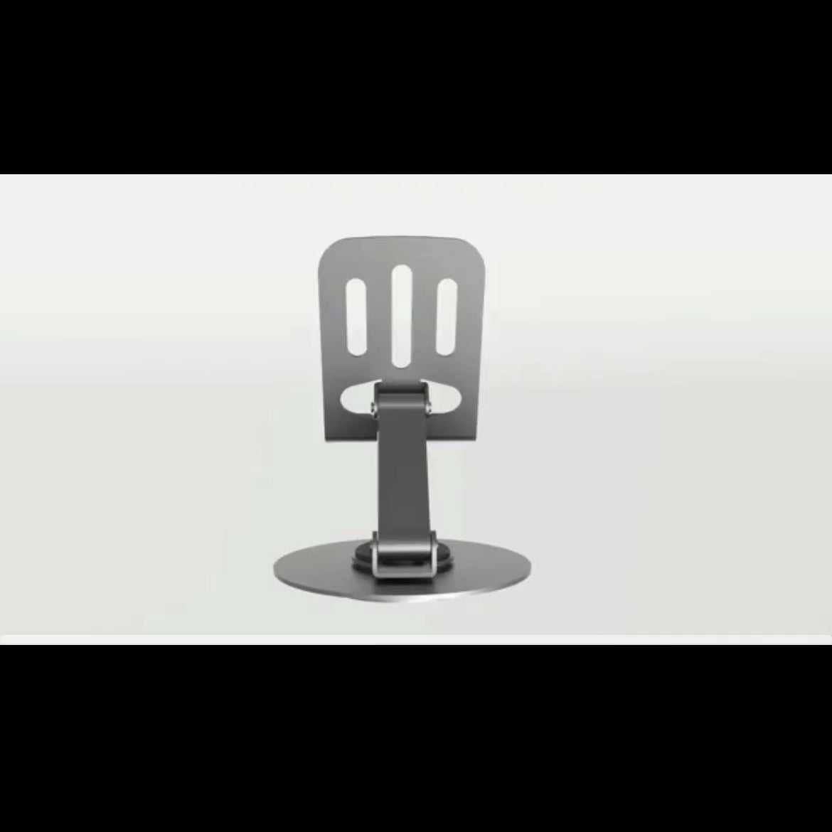 Portable Gray Folding Phone Stand with 360° rotation, adjustable angles, anti-slip base, and charging-friendly design. Your compact travel-friendly phone holder.
